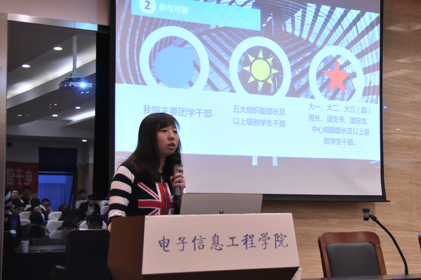 在这次活动中,首先是二级团校的第一次必修课,由备受学生青睐喜爱的、素有“毛概女神”之称的何畏老师以自己的心得体会与独特视角,细致入微地剖析十九大重要精神,使得在场的嘉宾老师及同学们对于十九大的了解认识更加深刻灵活。她对于历史虚无主义来源和危害的讲解发人深省,同时对于当今社会上的一些问题的冷静思考和理性批判也提升了在场大学生们的自觉性与警惕性。接着院团委常务副书记赵晓彤为大家介绍了17-18学年的精英培训营的课程体系,然后进行指导员的抽签分配环节,各小组分配到的辅导员将在后续的培训营中为大家提供各方面的指导与帮助。