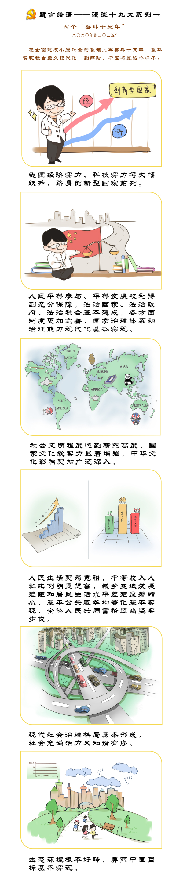 近日,一篇题为《慧言绘语——十九大特刊(一)》的微信推送在南京航空航天大学艺术学院师生的朋友圈里刷屏了,其中的漫画更是受到了广泛关注。六幅小图从经济、政治、文化、生态、人民生活等方面,结合最新十九大报告中提出的“两个奋斗十五年”,生动形象地描绘了第一阶段到2035年时中国社会的美好蓝图。