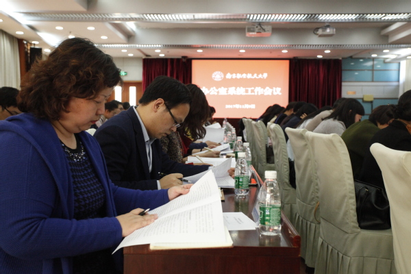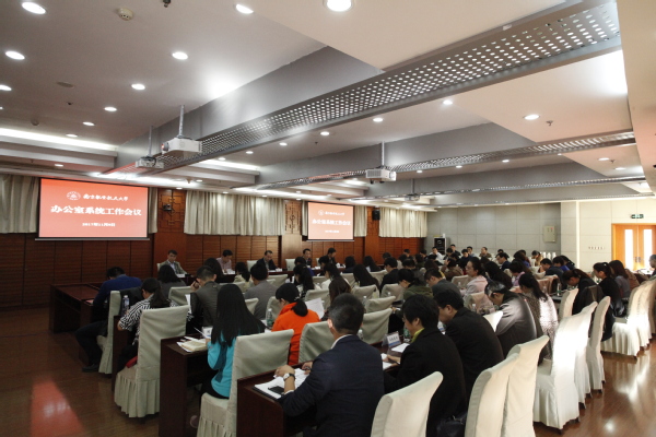 为进一步提高学校办公室系统工作实效,更好服务学校中心工作,11月9日下午,学校召开办公室系统工作会议。校党委副书记陶勇出席并讲话,党政办主任刘宇雷主持会议,各学院、直属单位办公室主任,机关职能部门办公室同志及学校党政办全体人员参加了会议。