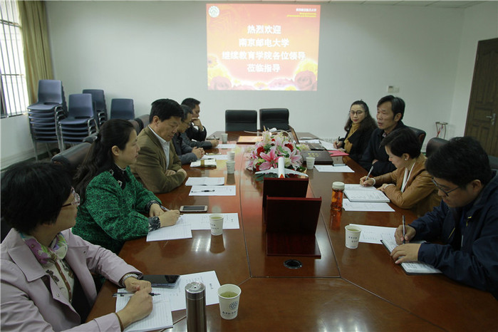 11月7日,南京邮电大学继续教育学院院长熊大辉、副院长严英一行五人来院进行自考助学调研,院长杜传锋、副院长王萌与会接待。