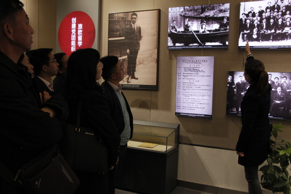 怀着深切的敬仰和缅怀之情,老师们先后瞻仰了周恩来铜像,观看了党性纪录片,参观了周恩来生平业绩陈列馆。在一幅幅泛黄的历史旧照片前,在一段段记录总理音容笑貌的视频资料前,教师们驻足凝视,认真聆听讲解。翔实的史料、庄重的陈列生动再现了周恩来总理波澜壮阔的革命生涯、崇高的品德、光辉的人格。在周恩来总理的雕像前,全体教师党员重温了入党誓词,誓词激昂高亢,久久回荡在纪念馆上空。
