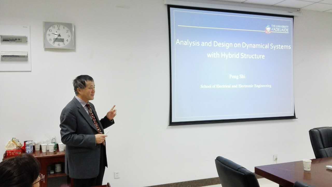 2017年11月17日上午,澳大利亚阿德莱德大学石碰教授应邀在将军路校区自动化学院1号楼405会议室做题为“Analysis and Design on Dynamical Systems with Hybrid Structure”的学术报告。会议由自动化学院院长姜斌教授主持,自控系师生积极参加了报告会。