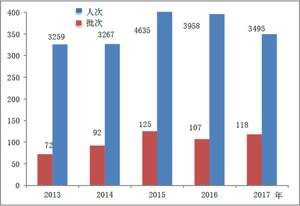 近五年返校校友接待量稳步增加