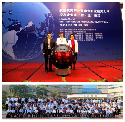 找定位,服务校友成长。2015年10月17日至18日,校友企业家“智•道”论坛在深圳举行。论坛结合了国家形势、学校特色、校友需求,以“仰望天空”和“金融在线”和“创业创新”三个主题为主线,以主旨演讲,高峰对话,分论坛讨论和企业考察相结合的形式展开。来自22个地区,包括航空航天民航领域、金融领域、创业创新领域的史坚忠、孙泽洲、黄领才、倪泽望、蔡晓庆、张云峰、周乐力、蔡奎、高云峰、卢耀普、童永胜等300余位校友参加,嘉宾云集,高朋满座,各领域校友通过此次论坛同台交流,真诚对话。深圳市副市长吴以环在开幕式上做了讲话。中国商用飞机有限责任公司副总经理史坚忠、深圳市副市长吴以环、南京航空航天大学校长聂宏共同为论坛揭幕。论坛内容丰富充实,程序合理流畅,会场庄重大气,达到开放、高效、有益、国际范的水平和标准。