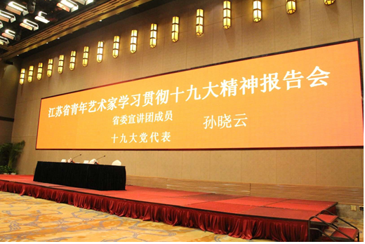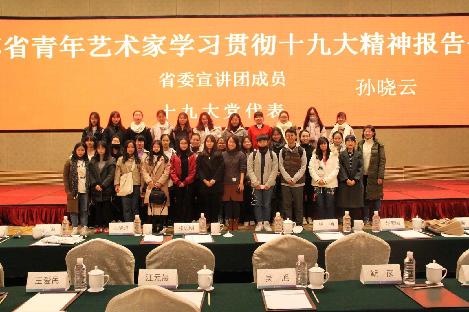 为了让青年艺术家更好的理解并深入贯彻落实党的十九大精神,进一步推动青年艺术事业的繁荣发展,根据江苏省委宣传部的统一部署,11月21日,由中国书法家协会副主席、江苏省文联副主席、江苏省书法协会会长孙晓云同志在江宁区会展中心做了学习贯彻十九大精神宣讲报告。此次会议共有青年艺术代表100余人参会,南航艺术学院近四十位学生代表受邀参加。