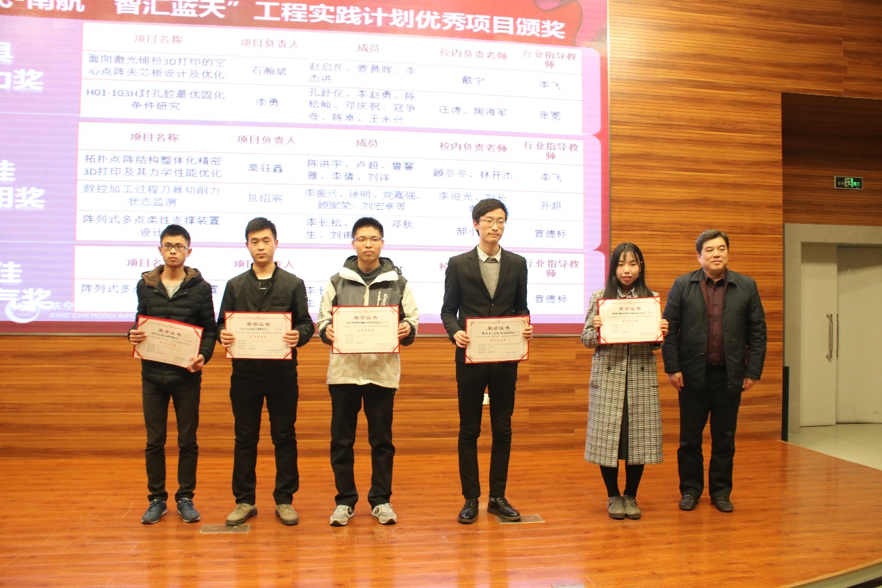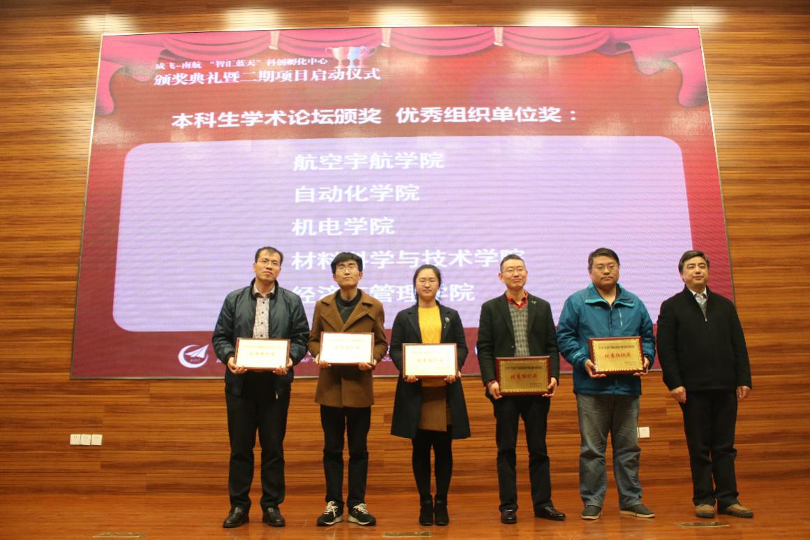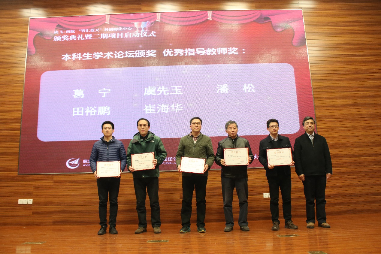 颁奖典礼分别为成飞-南航“智汇蓝天”工程实践计划一期项目颁奖典礼、“智汇蓝天”杯南京航空航天大学第八届本科生学术论坛和成飞-南航“智汇蓝天”工程实践计划二期项目启动仪式。