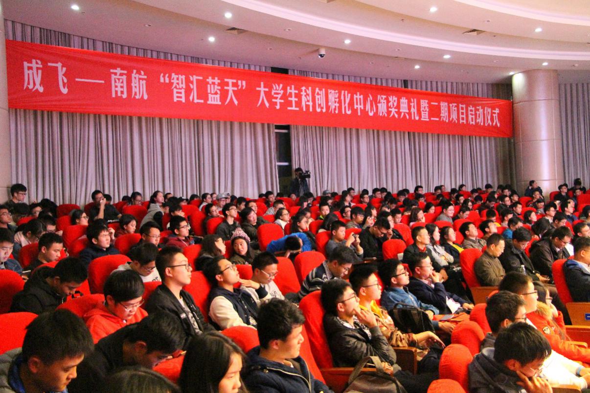 11月23日晚,成飞-南航“智汇蓝天”科创孵化中心颁奖典礼暨二期项目启动仪式在将军路校区一号楼报告厅顺利举行。航空工业成都飞机工业(集团)有限责任公司潘杰副总经理、航空工业成飞人力资源部林勇主任,李飞、方昊书等数十位专家参加了此次典礼,校长助理黄炳辉、教务处王成华处长、学生处侍旭处长,校团委、科学研究院、教师发展与教学评估中心和各学院领导,300余名师生共同出席了活动。