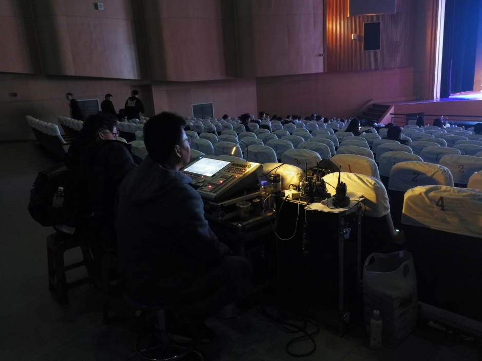 在整个研究生情景剧的活动中,台前幕后都能看到艺术学院老师的身影。从舞台灯光的架设到LED屏幕的设计布局,再到各类音响设备的保障和提供,整整用了30余个小时;从20余位嘉宾的采访到视频的完整制作,整整用了70余个小时。七个剧目,从确定剧本,到正式演出,期间共经历了3次集体审核指导和无计其数的排练表演,老师每次指导都要超过6个小时,累计共指导10余次。尤其在演出前三天,老师们每天工作到凌晨更是家常便饭,辛苦工作的老师没有怨言,因为他们知道同学们辛苦两个月的付出要呈现在舞台上需要的是绚丽到位的灯光、有震撼效果的音响等等各个环节的默契配合,就这样幕后的点滴促成了完美的演绎。