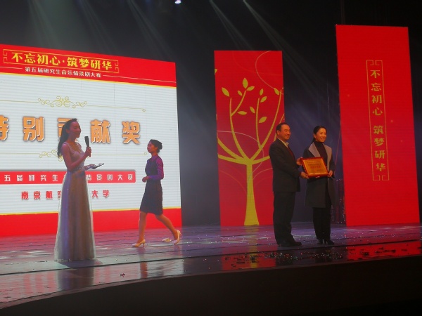 今年已经是艺术学院承办研究生音乐情景剧的第五个年头了,每年都有十余位专业老师和六十余位同学提供艺术指导,视频制作,舞美设计等专业支持,五年共有300人投入到研究生音乐情景剧之中,将教学与实践相结合,既促进了学院学生专业素养的提升,也更好地服务于繁荣校园文化,为营造艺术氛围提供了更多的服务和保障,研究生院还为艺术学院颁发了“特别贡献奖”。
