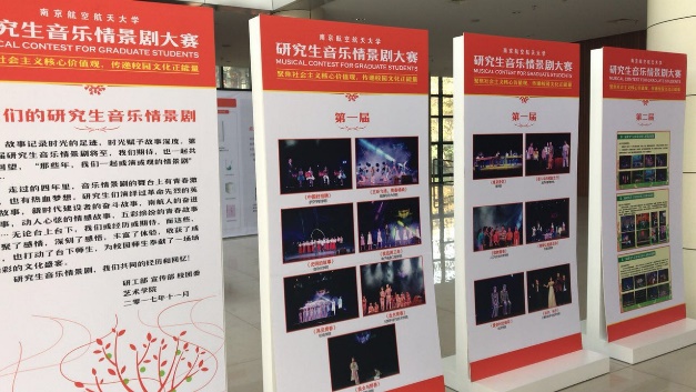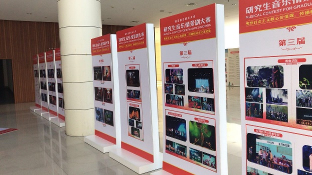研究生音乐情景剧大赛于2013年首次举办,大赛始终坚持“聚焦社会主义核心价值观,传递校园文化正能量”,至今已成功举办五届。五年来,研究生们共创作、表演音乐情景剧59部,其中原创作品45部,累计有1800余名研究生参演。在第五届大赛举办之际,研究生音乐情景剧大赛历届作品剧照在新大活前厅展览,吸引了师生们驻足观看。
