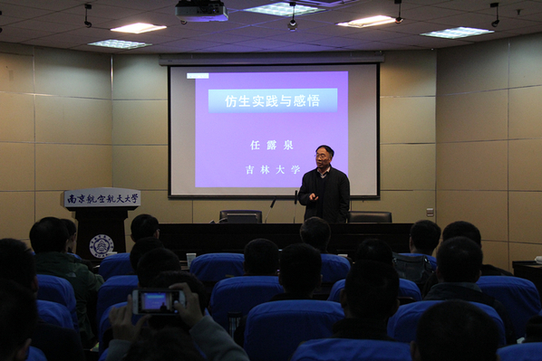 11月30日,中国科学院任露泉院士应邀来我校访问,并作了题为《仿生学的前沿及研究感悟》的报告。报告会由校科协秘书长孙建红主持,郭万林院士、校科协副秘书长刘双丽、航天学院院长陈卫东、党委书记季海群等出席了报告会,共有200余名师生到场参加。