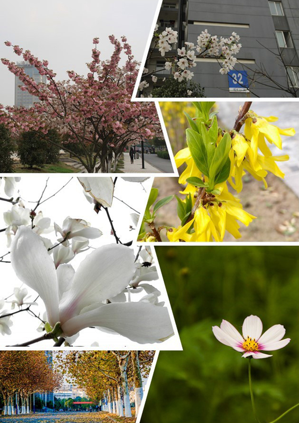 2015年校区樱花盛开的场景曾上过新闻联播,近年来逐渐形成规模的蔷薇花墙和格桑花景观也成为刷爆师生朋友圈的新景点。“一个理念、两个环节、三个机制、四个活动”,助力校区绿化工作提升。随着校区投入使用的面积增加,“管理必须从靠经验转变为靠科学,粗放管理转变为精细化管理。”2012年校区请专业公司对校园绿化景观、休闲设施进行整体的统一规划,通过绿化设计,突出校园文化特色,并在现有条件下制定了分批实施方案。在此基础上,校区引入竞争机制、分级管理制度和严格的常态化绿化考核制度。