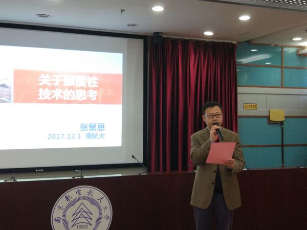12月1日,知名航空专家张聚恩研究员应邀参加我校第六届航空特色科技创新研讨会并作题为《关于颠覆性技术的思考》的首场航空特色科技创新基地特聘专家报告。校科协副秘书长刘双丽、航空特色科技创新基地部分专家、师生共计100余人参加。报告会由校科协秘书长孙建红教授主持。