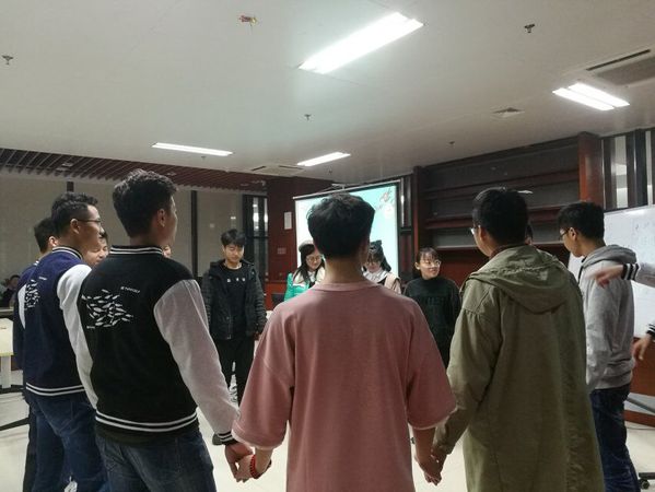 暖身结束后,沙龙正式开始。活动共分三个环节,分别就焦虑在生活中的表现、焦虑对我们的意义、如何带自己走出焦虑三个话题展开讨论。每个部分之间都穿插趣味的心理游戏。第一位发言者樊靖轩同学分享话题“焦虑在生活中的表现”的见解。他由生活中的日常小事讲起,再根据具体案例进行分析。他讲道,第二位发言者洪运骞同学讲述了“焦虑的意义”。他认为,说到焦虑不要觉得它就是一件坏事,焦虑可以发出危险信号,敦促个体采取措施预防危险的发生,这是它有利的一面;而过多的焦虑就是我们要避免的了。如果焦虑过多而且不能及时缓解,就会在心里进行堆积最后可能导致精神的崩溃。在第三位主讲人讲解之前我们进行了解手环的游戏。大家站成一圈,记住左右的人,在闭眼进行一定的位置平移后,手牵手想办法还原成原来的位置。同学们看上去玩的都很开心。在第三个环节,张柳怡和吴文雯同学请大家用积极思考走出焦虑的方式。经过头脑风暴,同学们总结出包括畅写欲言、拒绝暗示、淡化结果、放松练习、倾吐与求助等等,此外在焦虑无法缓解时,一定要及时向同学和老师求助,也可以来心理咨询师进行咨询,赶走焦虑。