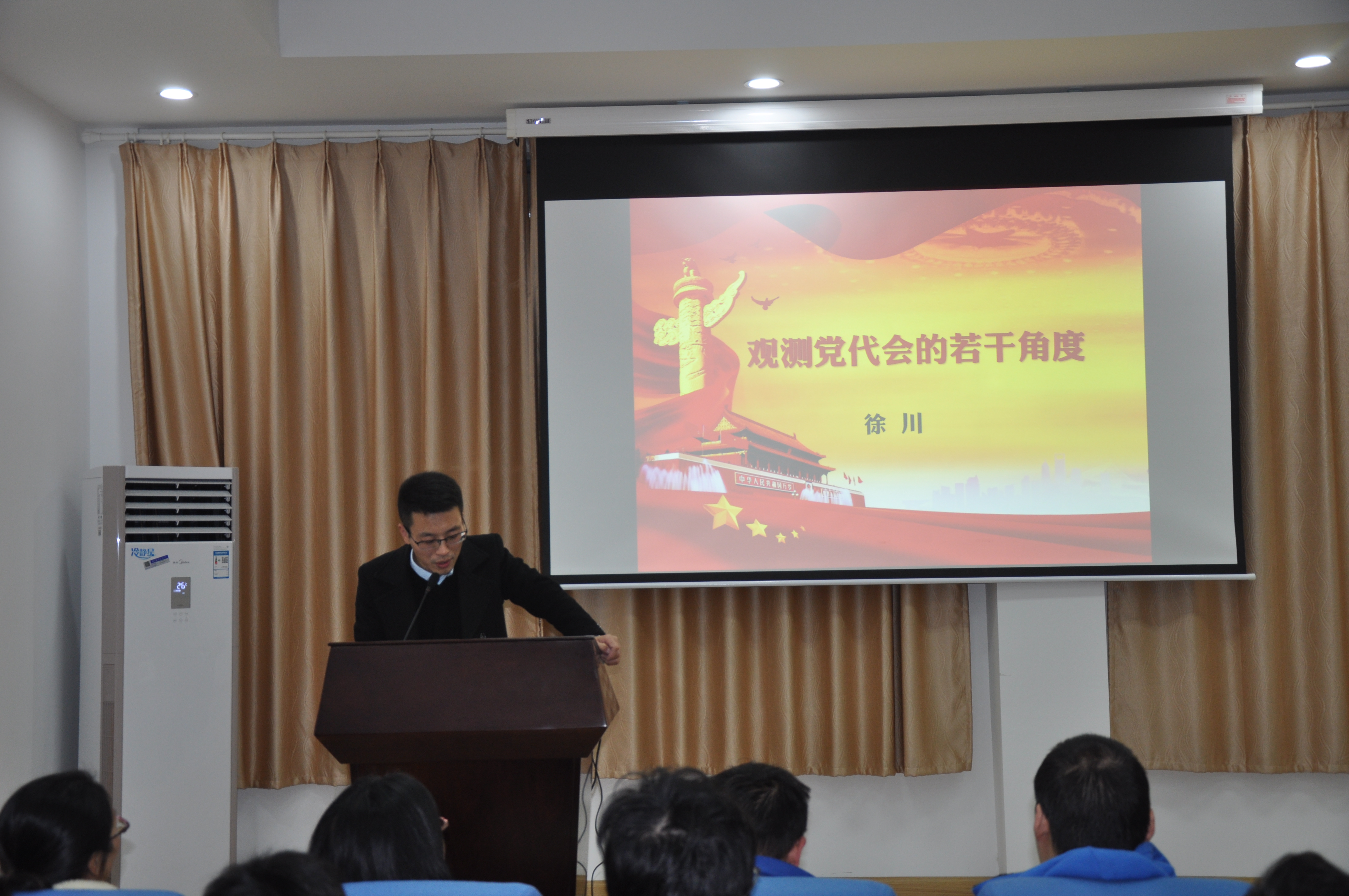 2017年12月4日下午,十九大代表、我校党的十九大精神宣讲团成员、我校马克思主义学院党总支书记徐川到能源与动力学院,作了一场题为《观测党代会的若干角度》的报告。能源与动力学院师生党员、预备分子及入党积极分子踊跃参加,座无虚席。报告会由学院党委书记刘鑫主持。