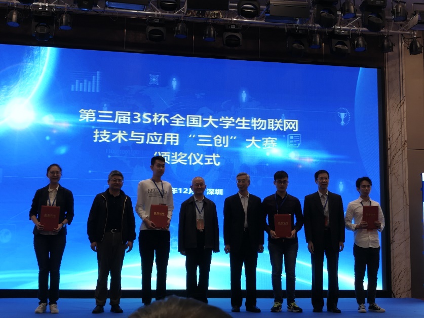12月2日,在深圳召开的 “全国物联网技术与应用大会(CIoT 2017)”和“全国无线电应用与管理学术会议(CRAM 2017)”上,举行了第三届3S杯全国大学生物联网技术与应用“三创”大赛颁奖仪式。我校学生获得大赛一等奖,中国工程院院士倪光南、薛禹胜、于全,中国科学院院士尹浩为我校获奖学生颁奖,大会还为获奖项目进行了展示与交流。