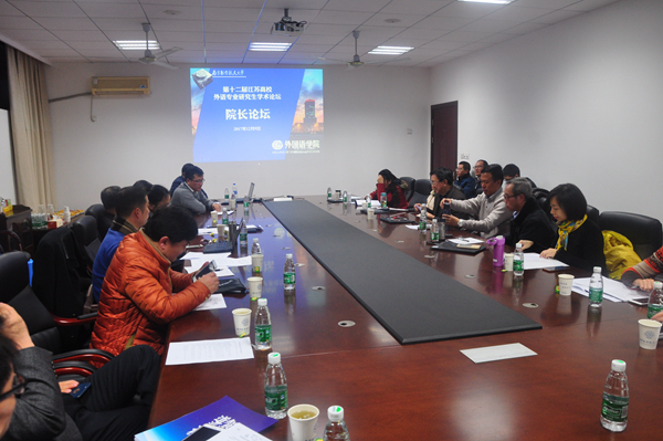 当天下午,分论坛发言分为语言学、文学、翻译三组,来自各大高校的博、硕士研究生代表48人进行了论文汇报。院长论坛是今年大会新增环节,来自19所参会高校的院领导参加了会议。围绕外语学科建设、研究生人才培养、师资建设等有关外语学院发展的关键性问题,各校院领导进行了深入研讨,交换了经验做法。