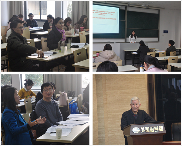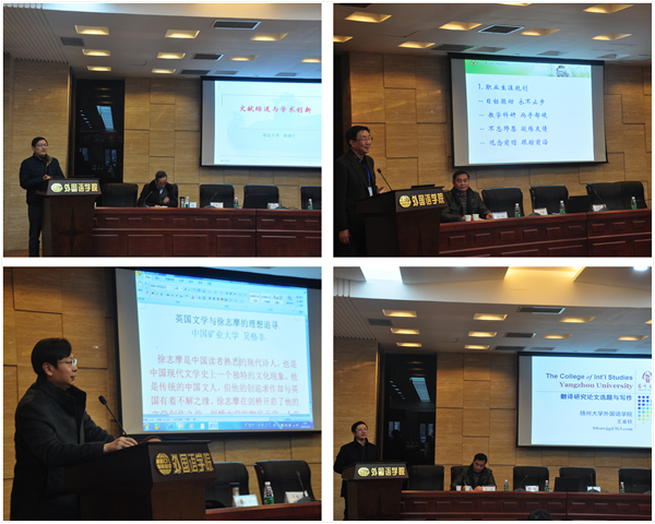开幕式后,大会为外国语学院新获批的教育部“国别与区域研究中心”和学院新成立的“航空英语研究中心”举行了揭牌仪式。随后,南京大学陈新仁教授、中国矿业大学吴格非教授、东南大学李霄翔教授、扬州大学王金铨教授分别作了题为“文献综述与学术创新”、“英国文学与徐志摩的理想追寻”、“基于职业发展的研究生学业思考”、“翻译研究论文选题与写作”的专题报告。