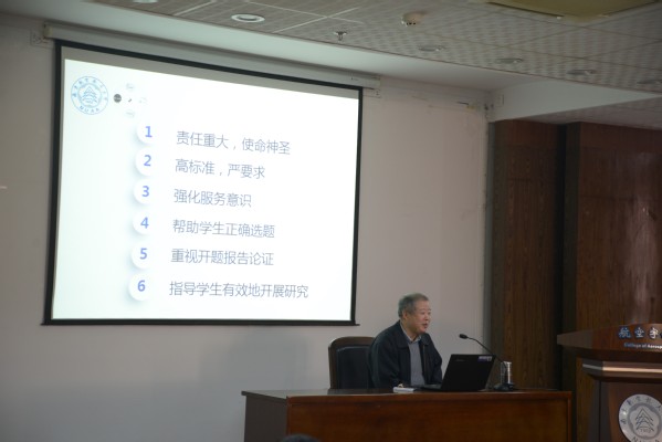 此外,材料学院党委书记孙占久、研究生院培养处处长郑祥明、研究生院学位办主任沈以赴、研工部副部长王亚彤分别就研究生招生、培养、学位授予、教育管理等方面进行了培训;中国知网学位论文部张戈军编辑做了“强化学术规范理念,促进教研指导创新”的报告;校心理健康中心杨雪花副教授做了有关研究生心理健康的培训。