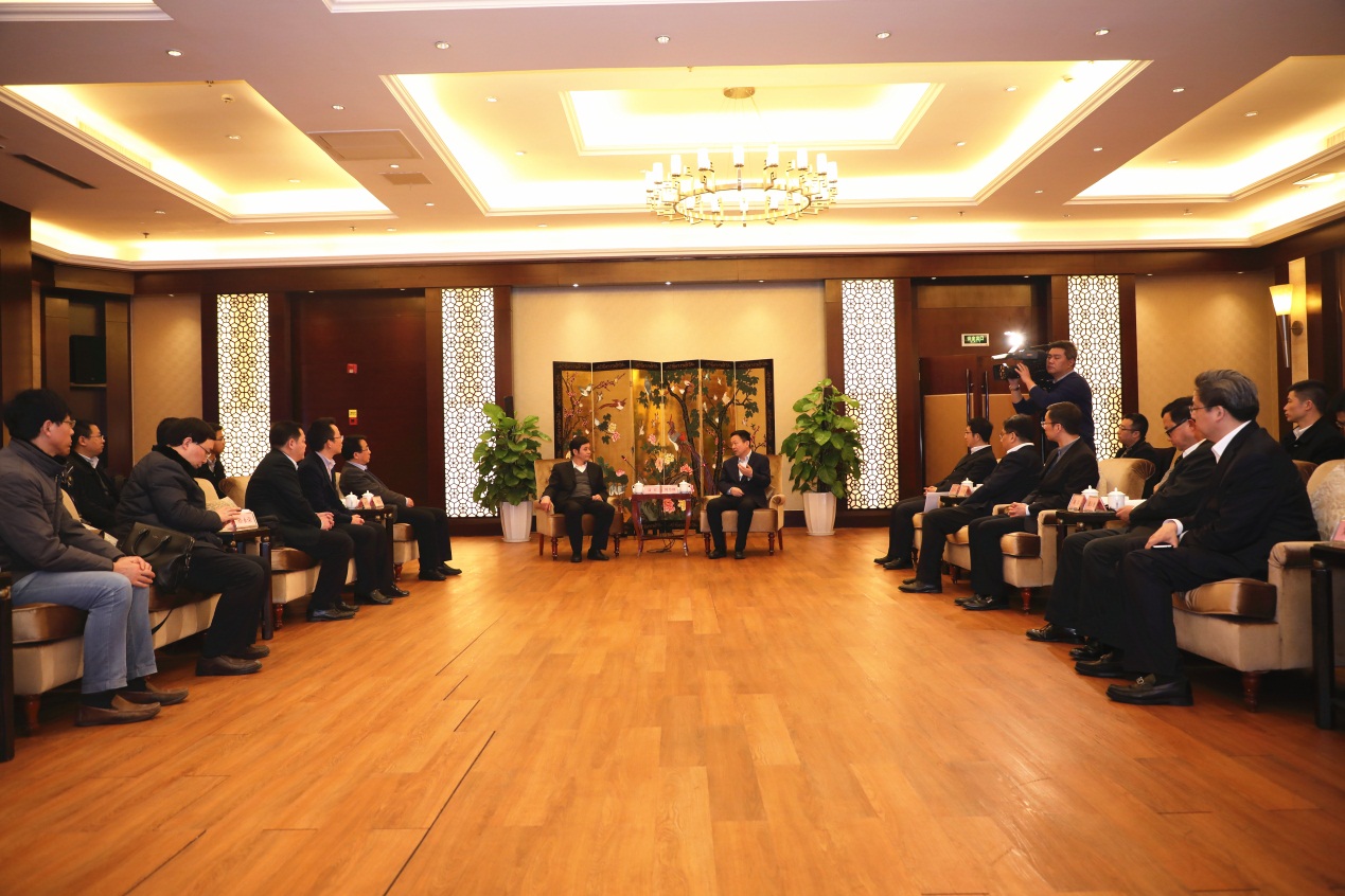 签约仪式前,江苏省委常委、苏州市委书记周乃翔会见了我校一行。周乃翔说,南航是一所特色鲜明的重点大学,为地方发展做出了突出的贡献,周乃翔代表市委、市政府感谢南航对苏州创新发展给予的关心和支持。南航与苏州的合作由来已久,与苏州一批龙头企业开展了紧密的产学研合作,并为苏州输送了一大批优秀人才,希望以此次共建研究院为契机,南航可以将更多科技成果在苏州转化并实现产业化,为全省乃至全国航空航天事业和经济社会发展做出新的贡献。苏州将全力支持研究院的建设,并着力营造一流环境,提供优质服务,创造良好条件,推动合作载体和项目落地生根。