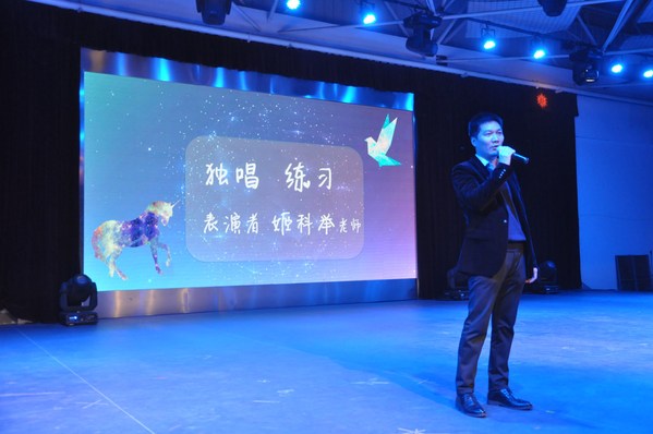 在老师同学们热烈的欢呼声和掌声中,迎新年晚会正式开幕。精彩节目让台下的同学目不暇接,不乏激情四射的舞蹈,幽默诙谐的相声和欢笑过后发人深省的小品……来自航天学院仿生所的姬科举老师现场演绎了《练习》;来自微小卫星研究中心的张镜洋和陈志明老师联合献演了《新贵妃醉酒》,台上老师同学们专注的表演,赢得了台下掌声。