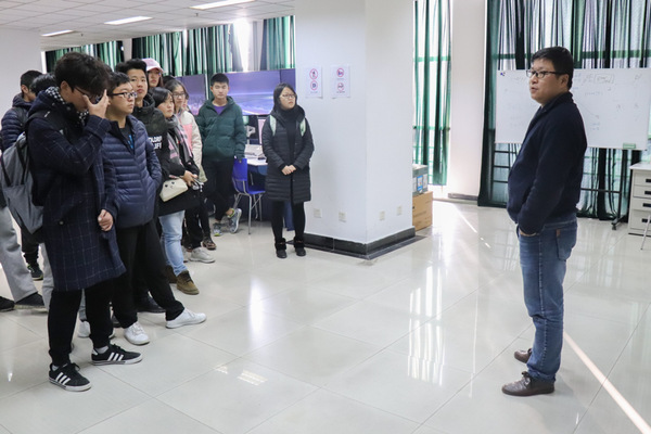 第一站机场管制模拟实验室,由空管系教师李桂毅担任讲解员,他以乌鲁木齐机场和南京禄口机场为例,详细讲解了塔台管制的工作内容,同学们切身体会了塔台工作环境,对起降规则和跑道灯光等细节问题有了深刻的认识。