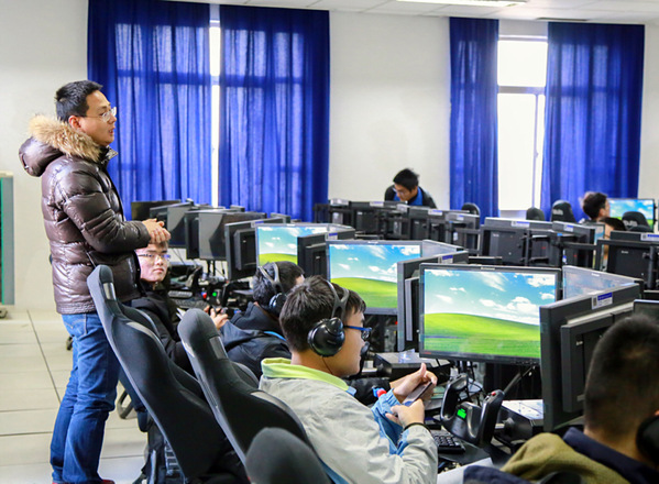 第五站飞行模拟技术实验室,由飞行技术系蔡中长担任讲解员,他为大家讲解如何借助配套的辅助软件使用模拟器;该实验室平时主要用于大三飞行学生进行模拟飞行训练,此次开放日也让同学们坐在一台台模拟器前身临其境般驾驶着飞机,实现翱翔蓝天的梦想。