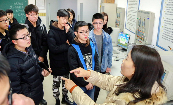 第四站飞机电气系统及传感器技术实验室,由民航工程系教师吴红兰担任讲解员,她深入浅出地讲述了航电设备的重要作用及发展前景,同时,研究生王玲玲则为同学们介绍了一些飞机机载电气设备,并带领同学们观摩了测试舱门密闭性的装置、飞机蓄电池充放电过程。