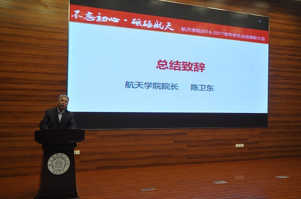 本次总结表彰大会表彰了航天学子在2016-2017学年取得的成绩,增强了优秀学生示范引领作用。航天学院将在“双一流”建设的目标指引下,以培养高素质公民和航天领域未来开拓者为人才培养的根本目标,围绕“学生素质能力培养计划”,继续引导航天学子勤于学习、善于创造、勇于担当、甘于奉献。