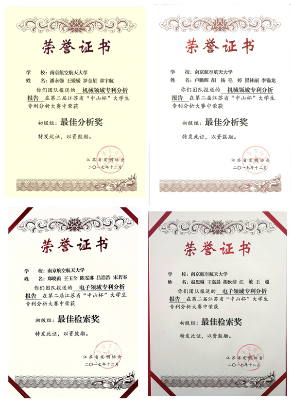 在刚刚结束的第二届“中山杯”江苏省大学生专利分析大赛中,我校图书馆组织的参赛队伍荣获初级组最佳检索奖2项,初级组最佳分析奖2项,我校荣获最佳组织奖。