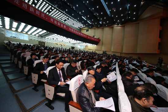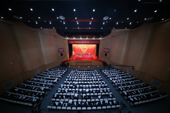 大会会场气氛庄严热烈,大会主席台正中悬挂由鲜艳的红旗簇拥着的中国共产党党徽,“走进新时代,开启新征程,为建设特色鲜明的世界一流大学而努力奋斗!”的标语悬挂在二楼眺台。