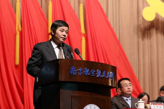 在报告最后,郑永安满怀激情地号召全体南航人紧密团结在以习近平同志为核心的党中央周围,高举旗帜,锐意进取,埋头苦干,坚定不移地朝着航空航天民航特色鲜明的世界一流大学目标努力奋进,为实现中华民族伟大复兴中国梦做出新的更大的贡献!