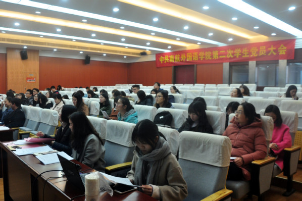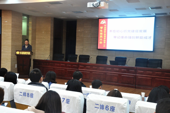 12月22日中午,外国语学院学生党总支第二次党员大会在将军路校区召开。校党委组织部正科级组织员王宁,外国语学院党委书记刘健荣、党委副书记梁薇,英语系、日语系负责人,各年级辅导员和全体学生党员参加了会议。大会由院团委书记杨一主持。