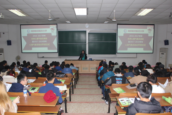 本次活动分两个部分进行,第一部分为2016-2017学年优秀心理气象员表彰大会,第二部分为2017-2018学年心理气象员首场心理知识专题培训。