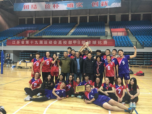 12月26日,江苏省第十九届运动会高校部甲B组排球比赛在我校将军路校区开赛。经历7天高强度的苦战,2018年1月1日下午17点08分,男女组八强排序全部产生。本次比赛有22支高校排球队参赛,其中运动员252名,教练员和领队58名。此外,来自全省各地的20名国家级裁判员为此次省运会的顺利进行保驾护航,7天共计完成了66场激烈的排球比赛。南航有60余名学生志愿者参与赛事服务,其中随队志愿者40余名,为参赛各队提供全赛程的随队服务。