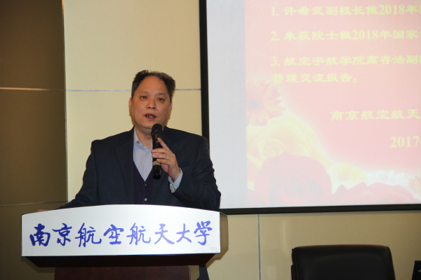 航空宇航学院常务副院长高存法教授针对学院如何组织国家自然科学基金申报做管理报告。高院长号召老师要“想写、早写、会写、写好”,同时针对每年的申请书学院都会组织多轮评审,邀请校内外专家把关,提出宝贵意见,航空宇航学院国家自然科学基金资助数和资助金额一直名列我校前茅。