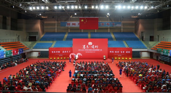 明德笃志,涵养优良学风;砥砺前行,领航青春梦想。1月3日下午,我校“笃志·前行 ”2016-2017学年本科生总结表彰大会在将军路校区体育馆举行。校党委书记郑永安、校长聂宏、纪委书记杭育新、副校长施大宁、党委副书记陶勇,校长助理熊克、黄炳辉出席大会。空军驻南航选培办主任李兵上校,学校相关部处领导、各学院领导、教师代表及两千余名本科生参加大会。同时参加的还有设奖企业代表航天五院、华为公司、朗坤公司。
