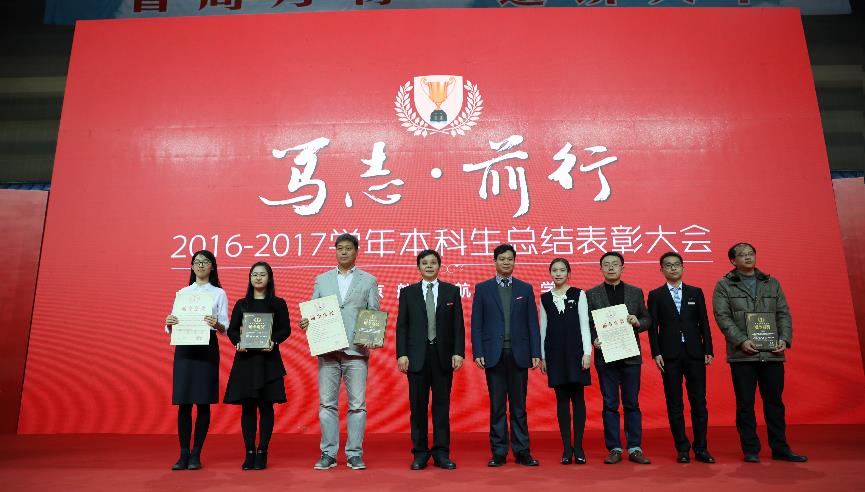 表彰大会由教师代表能源与动力学院徐惊雷教授和特别奖学金获奖学生代表经济与管理学院胡晓婕同学主持。副校长施大宁宣读了《南京航空航天大学关于表彰2016-2017学年本科生先进集体、先进个人的决定》、《南京航空航天大学关于颁发2016-2017学年本科生奖学金的决定》、《南京航空航天大学通令嘉奖(第57-63号)》。校领导和与会嘉宾分别为获奖的先进个人代表和先进集体代表颁奖。校党委书记郑永安、校长聂宏为通令嘉奖获奖者颁奖。