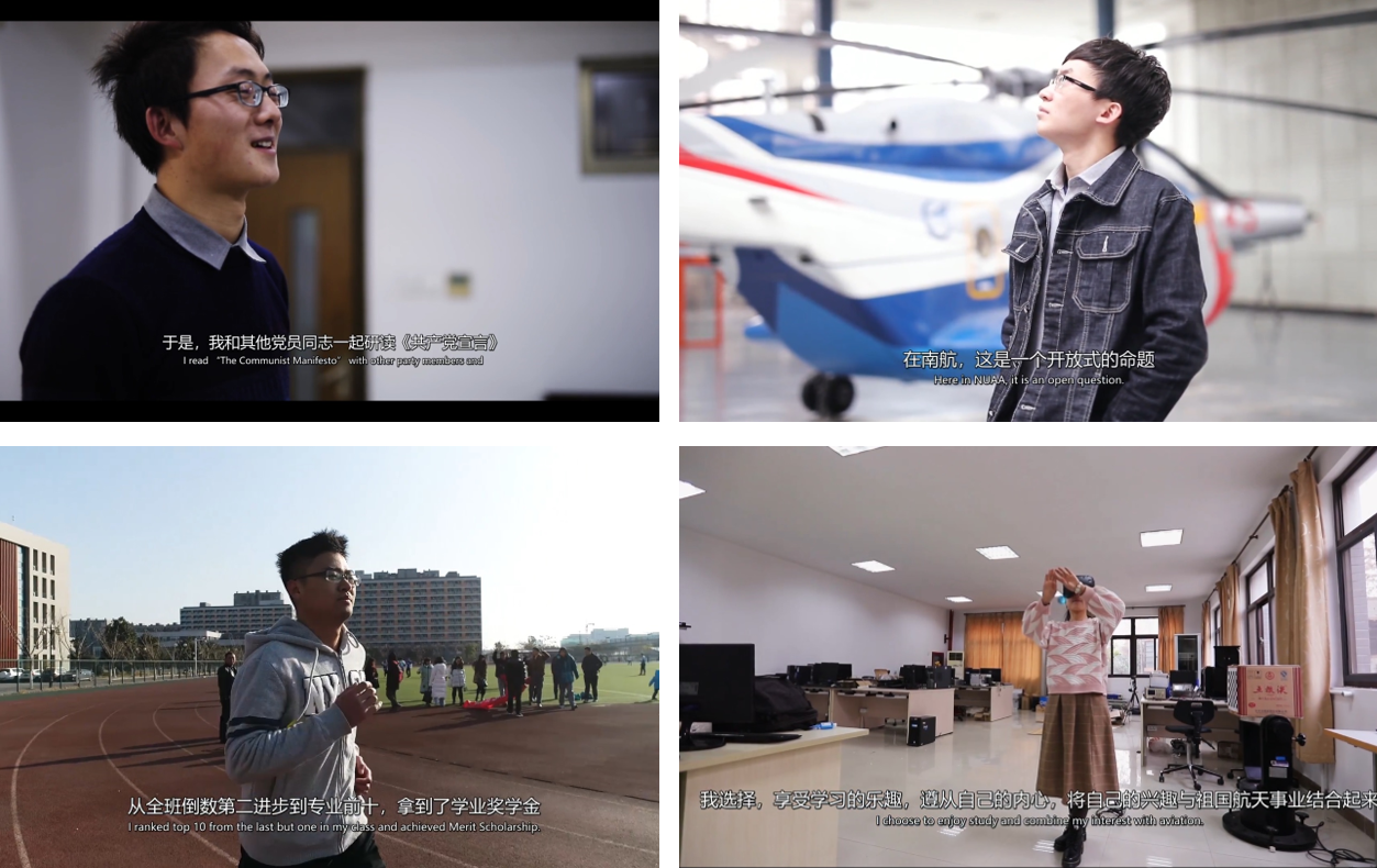 在《我的大学》篇章中,主题短片以“在南航,这是一个开放式的命题”为主线,展现了园丁励志一等奖获得者占盈同学、校长特别嘉奖之鸿鹄奖获得者吕岩同学、百花奖获得者林怡聪同学、求是奖获得者余修铭同学的成长关键词。他们逆境而起、忠于信仰、勇于创新、全面发展的心路历程感染了在场的每一个人。现场讲述中,校长特别嘉奖之担当奖获得者张若凡同学以一名国防生的身份,通过分享自己潜心求学和刻苦训练的奋斗经历,展示出一个“有灵魂、有本事、有血性、有品德”的新时代国防骄子是如何“炼成的”。在《我们的大学》篇章中,主题短片以标兵宿舍、标兵班级、杰出团队“一天”的经历展现了宿舍同学间的相互包容、共同进步,班级同学间的相互关爱、共同成长,团队伙伴间的相互鼓励、共同奋斗。“挑战杯”特等奖获奖团队代表江柳慧同学现场分享了他们如何从别人眼中的科创“小白”到科创“大神”的成长经历,展现了科学分工、通力合作、相互信任、彼此鼓励的团队形象。