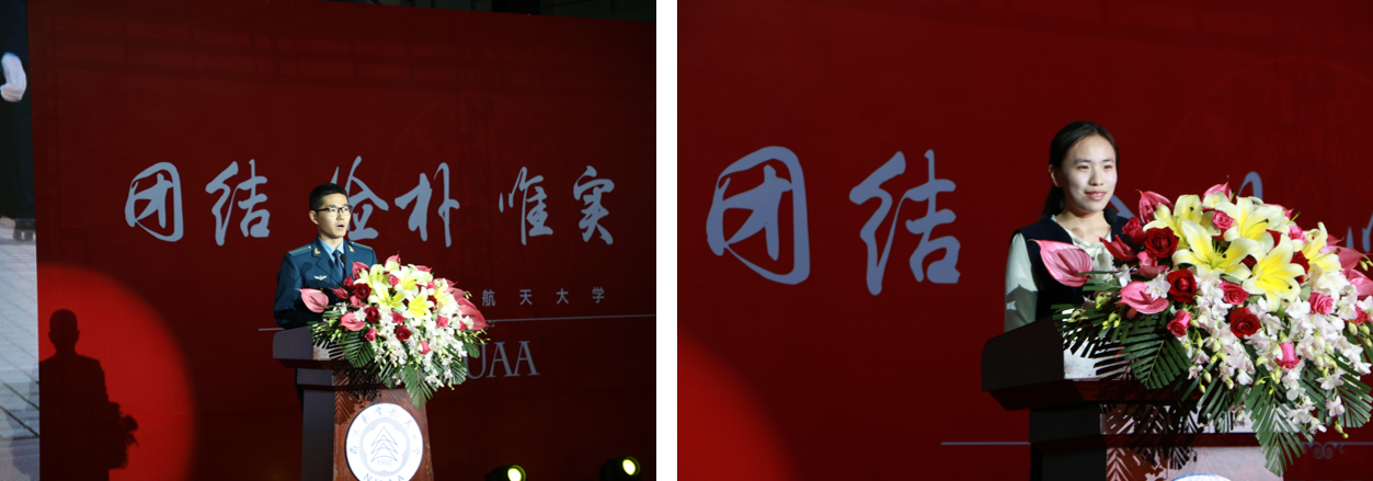 在《你的大学》篇章,来自不同专业、不同省份、不同民族,有着不同性格的2017级新同学通过一段即兴的访谈,真实的再现了他们对“选择”的理解,对初入南航的学习感受、对父母师长的关怀感恩、对大学目标的笃定或彷徨,以及他们心目中的大学关键词。质朴的话语、真实的想法,或感人、或风趣,引发了在场学生们的强烈共鸣,也让接下来的优秀学生事迹分享更具针对性和有效性。