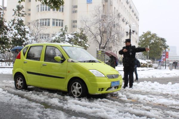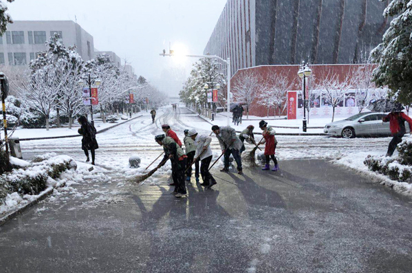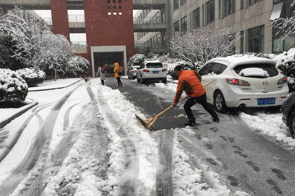 1月3日晚间开始,一场大雪降临南京城。短短一夜,厚厚的白雪便覆盖了整个校园。伴随着气温骤降,道路上的积雪和厚厚冰层给师生们行走带来了困难和安全隐患。学校后勤、保卫等相关部门和学院提早谋划,积极行动,保障了两校区的正常运转和师生的安全出行。