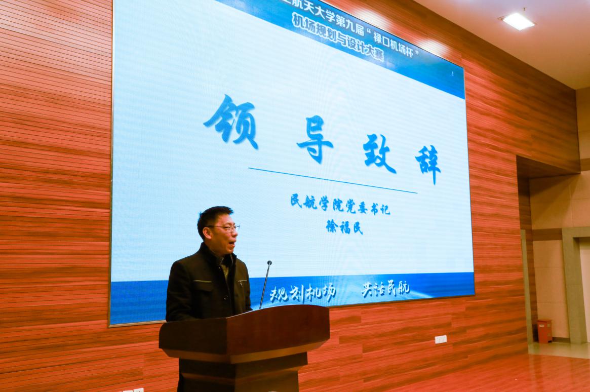 1月5日,南京航空航天大学第九届“禄口机场杯”机场规划设计大赛在将军路校区顺利举行。中国民航机场建设集团规划设计总院院长吴浩宁、南京禄口国际机场人力资源部培训中心主任陈辉峰、信息技术部副主任王喜明、人力资源部助理金一飞,我校校团委副书记李君、民航学院党委书记徐福民和师生代表400余人共同参加了本次大赛。民航学院党委书记徐福民为本届大赛致辞、中国民航机场建设集团规划设计总院院长吴浩宁为大赛点评。