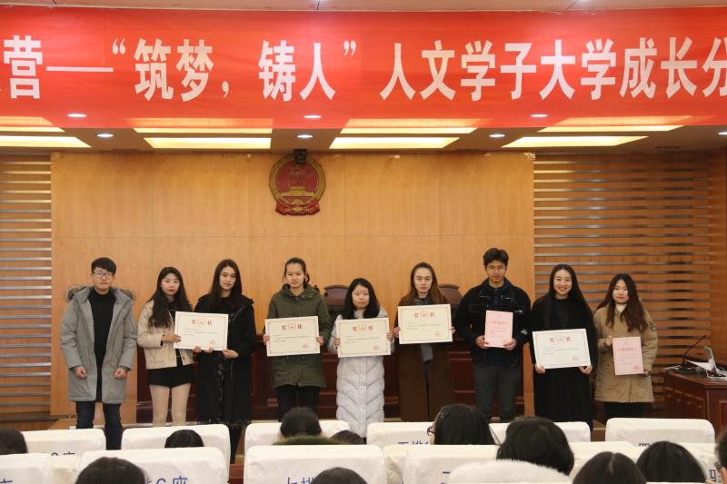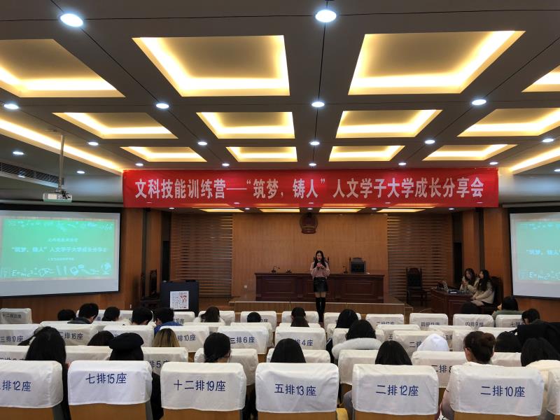 1月9日下午,文科技能训练营之“筑梦·铸人”人文学子大学成长分享会在模拟法庭举行,六位杰出学子登台分享成长故事。学院党委副书记尹春苹参与了本次活动。