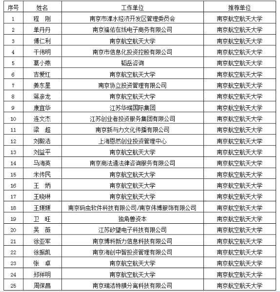 南京航空航天大学入选首批“全国万名优秀创新创业导师人才库”导师名单
