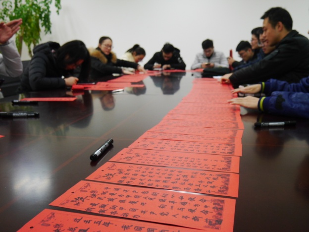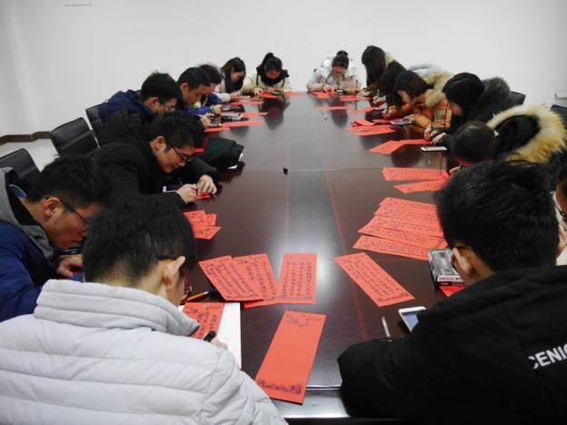 1月31日上午10时,自动化学院研究生各党支部的支部书记们来到学院305会议室参加集中撰写新春祝福寄语活动,将十九大报告应知应会100题的内容书写在红彤彤的祝福纸上,以这种新颖的形式把十九大报告的精髓牢记于心。