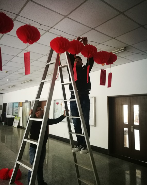 2月2日,为向广大群众更好更广地普及十九大精神,研究生党支部代表走进揽翠苑社区,将祝福的横幅和灯笼挂在了社区物业大厅,把十九大的精神带到了居民的家门口。