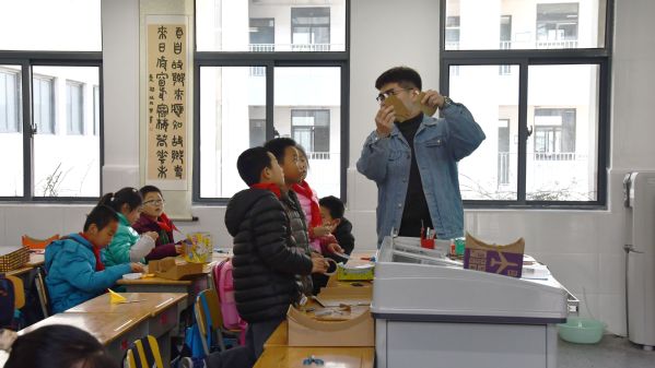 3月5日,全国第55个“学雷锋纪念日”,就在这一天,艺术学院的“盒子物语”团队走进了将军山小学,为小学生们带来了一堂精心准备的手工课,让孩子们通过手工将废旧的快递盒变成精美的航模,孩子们仰起一张张稚嫩的笑脸说:“环保居然如此有趣”。