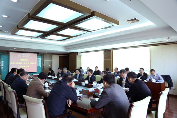 3月13日下午,成都市委常委、总工会主席吴凯一行来校走访,就进一步推进校市合作进行洽谈。校党委书记郑永安、副校长许希武出席座谈会。会议由许希武主持。