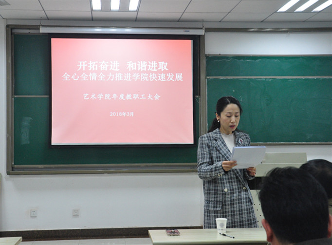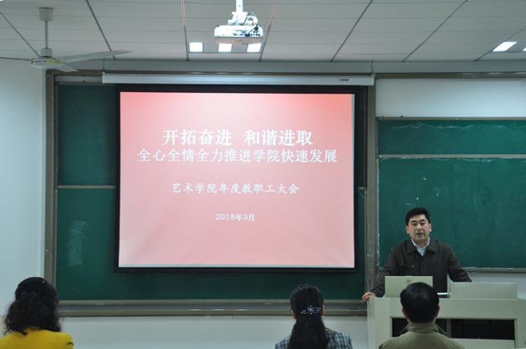 3月15日下午,艺术学院组织召开新学期全院教职工大会,学习传达学校新学期干部教工大会暨全面从严治党工作会议精神,并结合学院发展实际,对学院2018年度重点工作进行布置。