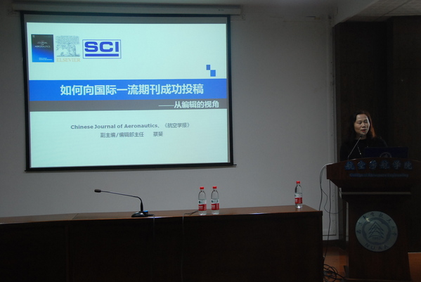 3月15日下午,蔡斐主任在航空宇航学院学术报告厅做了题为“如何向国际一流期刊成功投稿”的报告。蔡斐以编辑的视角结合实际案例,从什么样的论文容易被退稿、科技论文撰写时的注意事项、如何选定合适的期刊投稿和收到修改意见后如何进行修改等四个方面,分享了自己的真知灼见,并详细介绍了《航空学报》《Chinese Journal of Aeronautics》投稿指南,最后围绕作者在科技论文撰写与投稿过程中遇到的具体问题与师生们进行了问答互动。